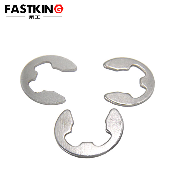 在汽车传动系统中,开口卡环的应用最为典型:传动轴上的滑动齿轮需沿轴向移动以实现换挡,轴上预设的环形槽内便装有不锈钢开口卡环,卡环通过自身弹性紧密贴合槽壁,既限制齿轮的最大移动行程,又避免齿轮滑动时产生径向晃动;在电动工具(如电钻、电锯)的电机轴上,开口卡环则用于轴承限位,防止电机高速运转时轴承因轴向力发生窜动,保障传动精度。选型时需重点关注卡环的 “开口间隙” 与 “厚度”—— 开口间隙过大易导致卡环安装后松动,过小则会增加装配难度;厚度需与轴上环形槽的深度匹配,确保卡环安装后不突出轴表面,避免干涉其他部件。