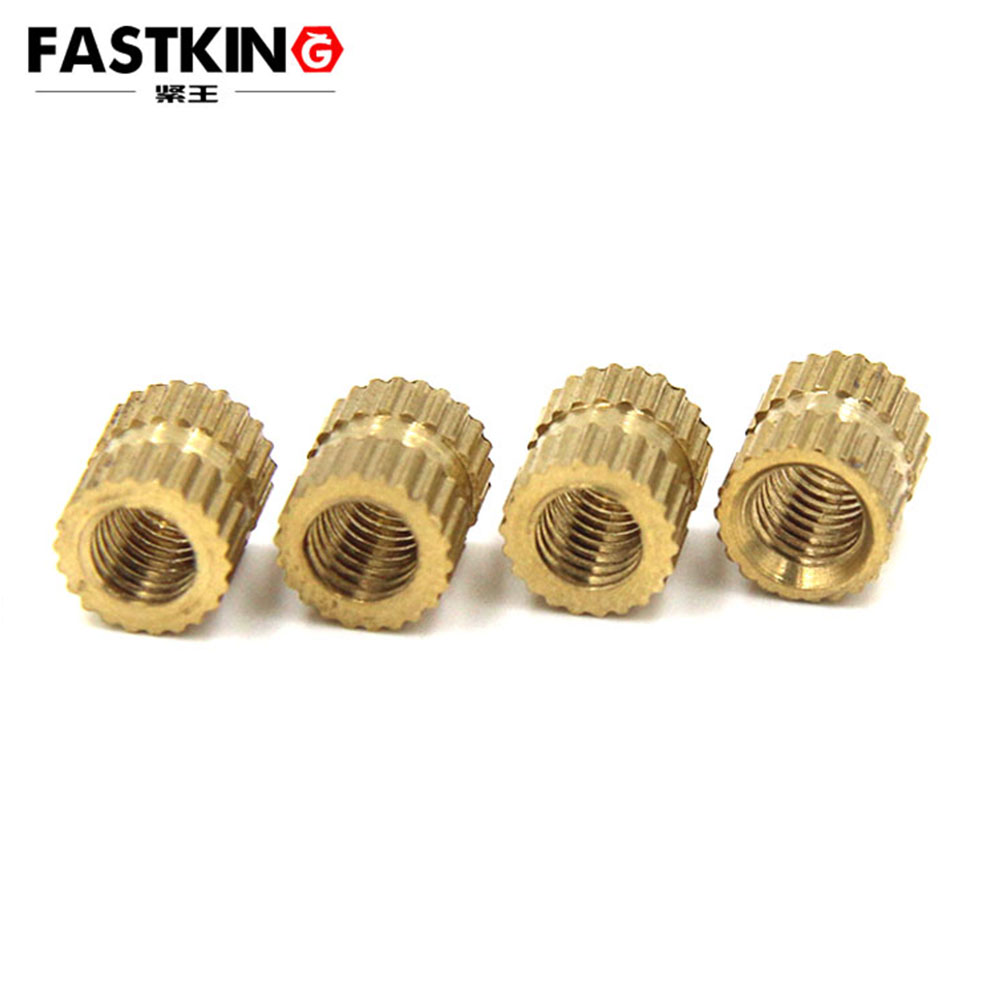 The appearance of copper nuts used in injection molding is generally round with various patterns pressed on them. Those used for mold hot-melting are generally cylindrical, while those for hot-pressing or cold-pressing have a certain taper or barbs on their appearance.